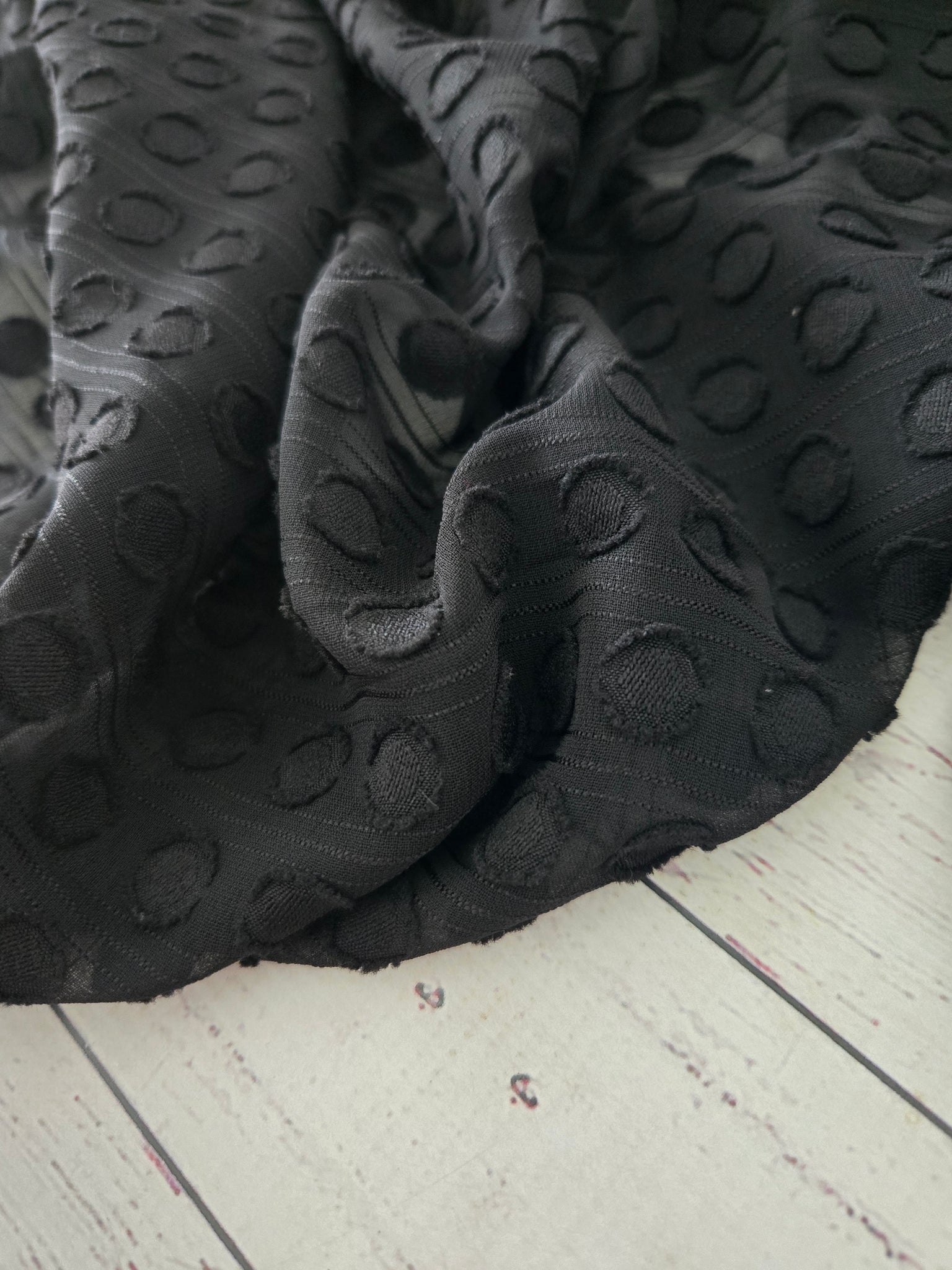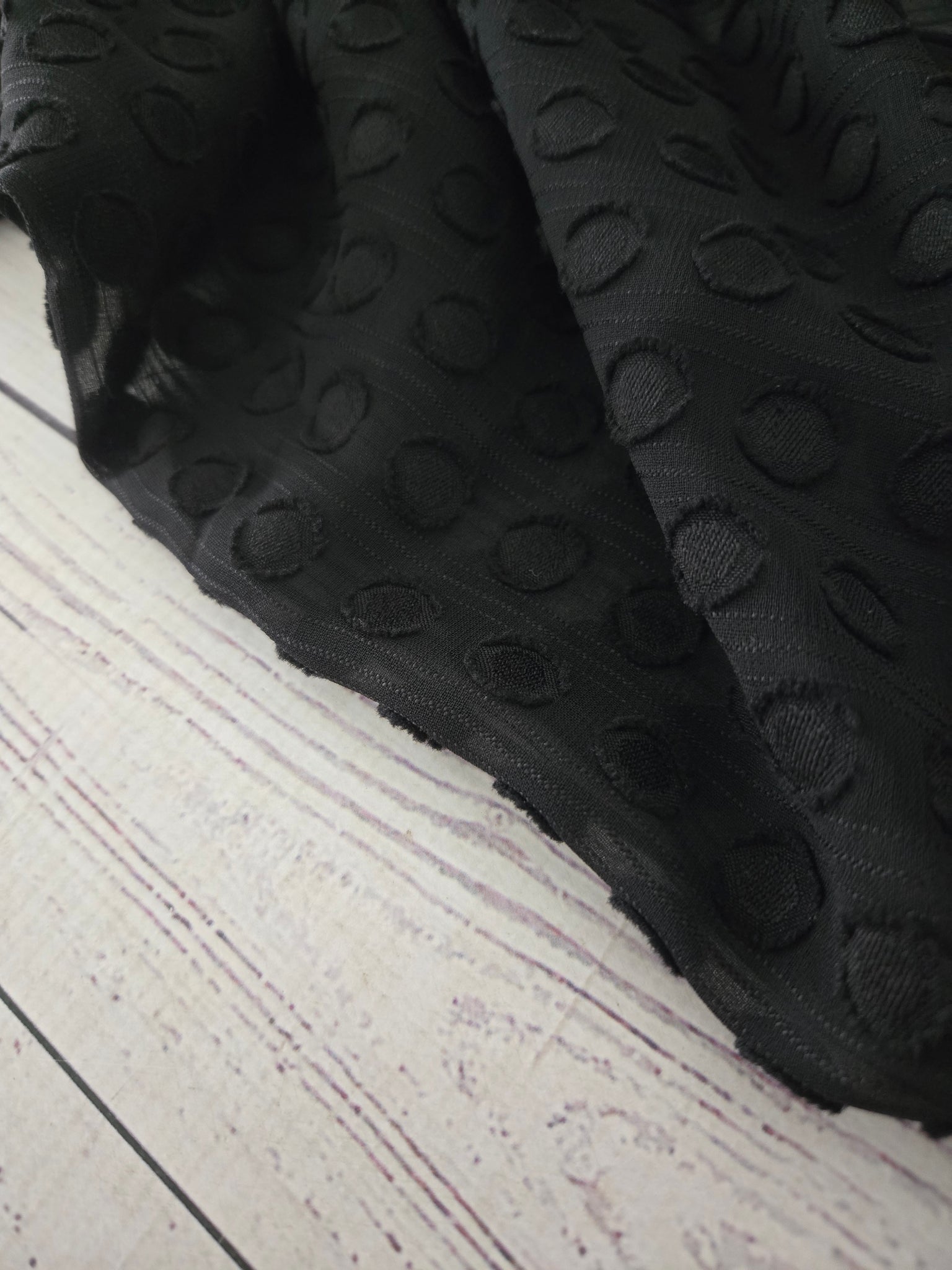Solid black with flocked dots.