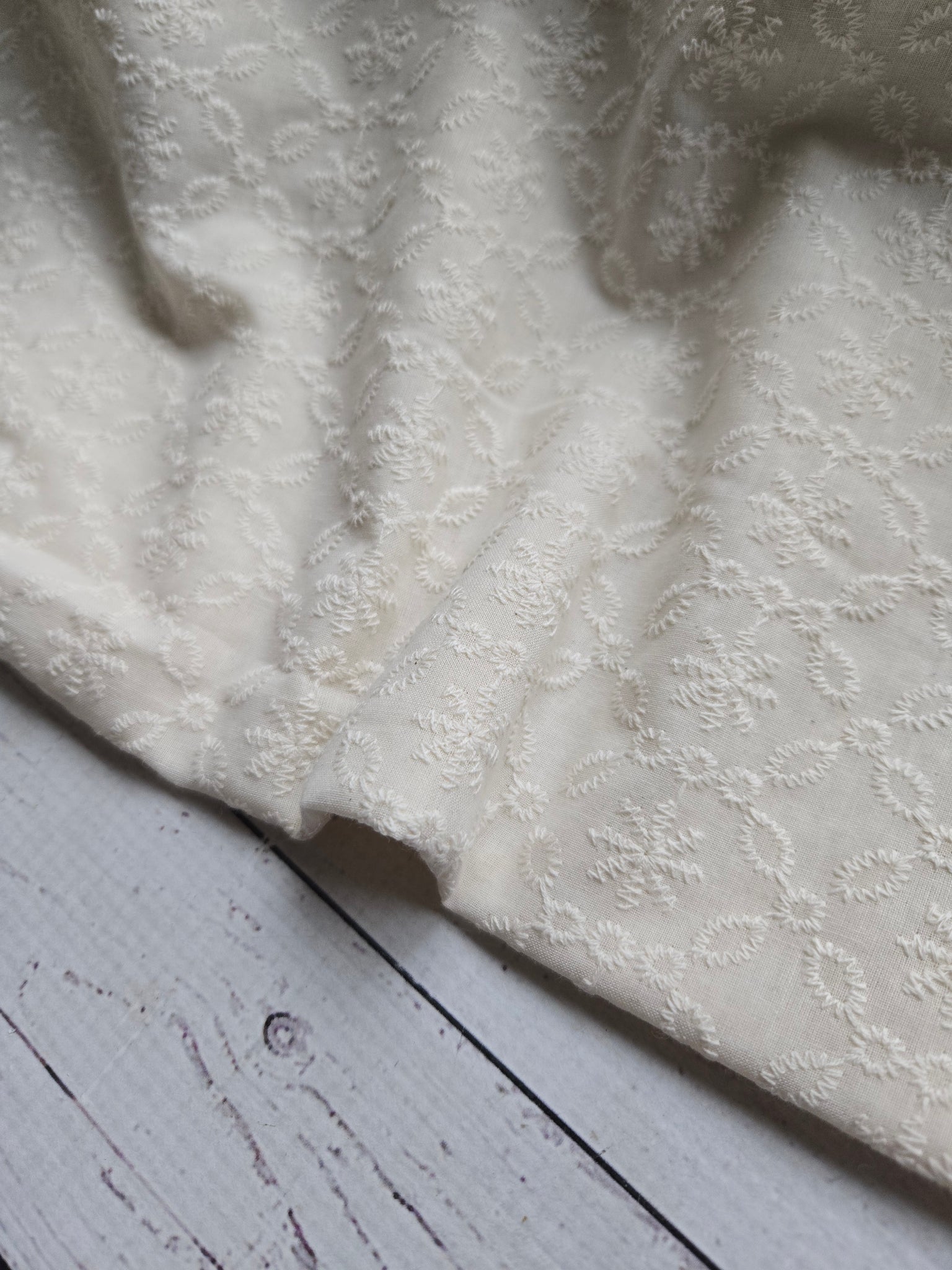 This cotton blend has a soft hand feel, and would be cool and breezy for summer garments.