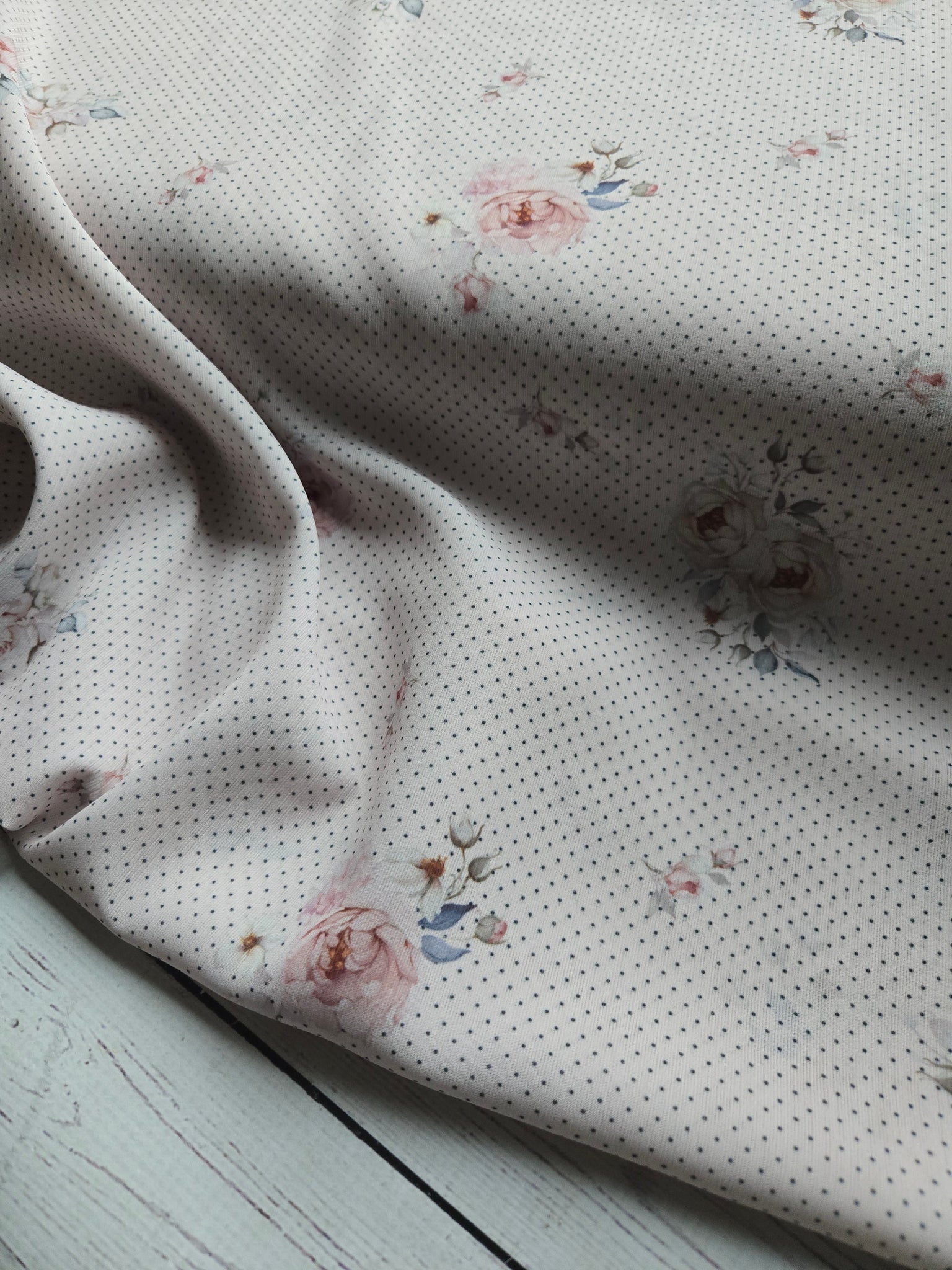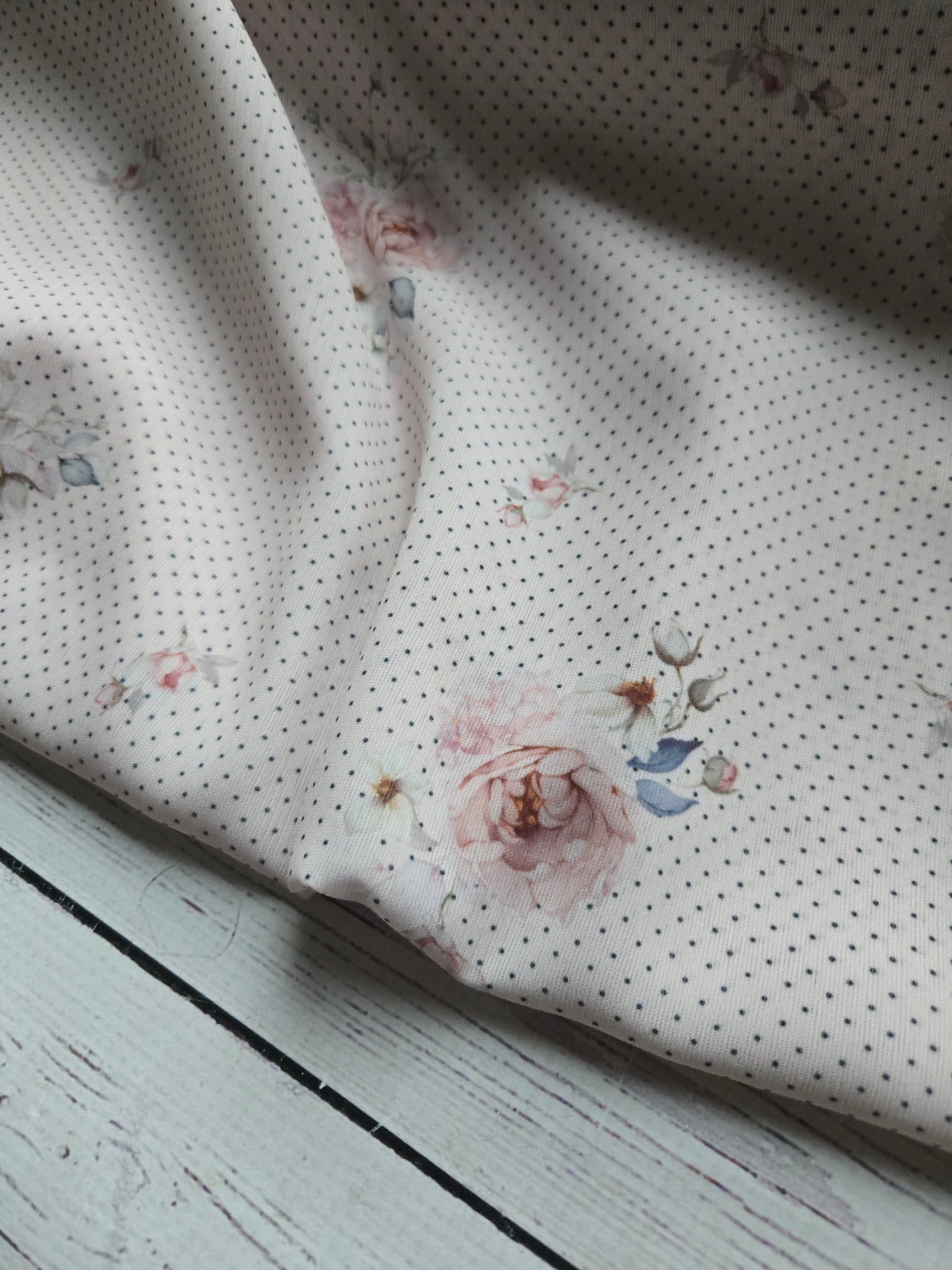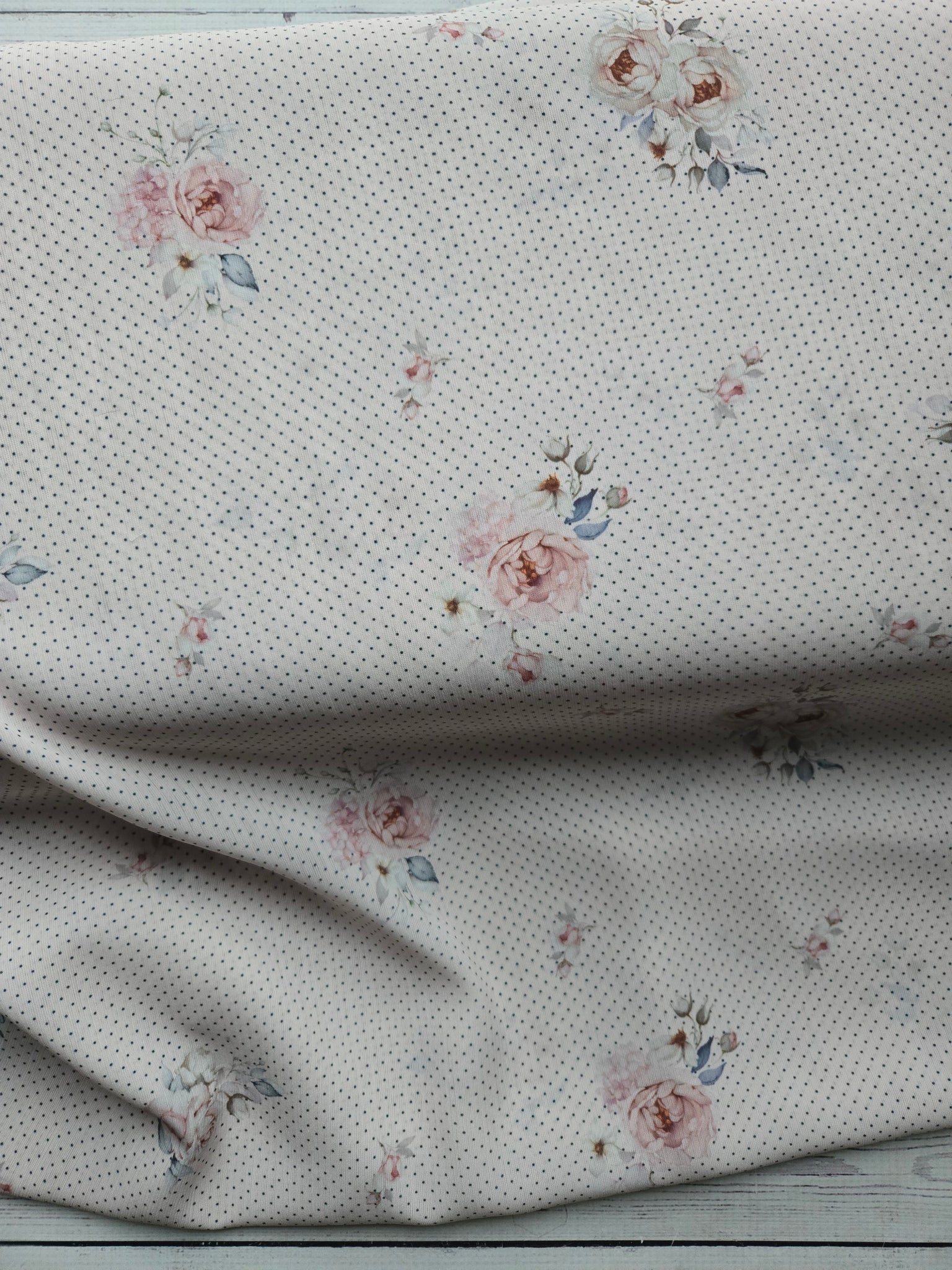 Exclusive Design- Cream & Black Pin Dot Floral Crinkle Georgette {by the half yard}