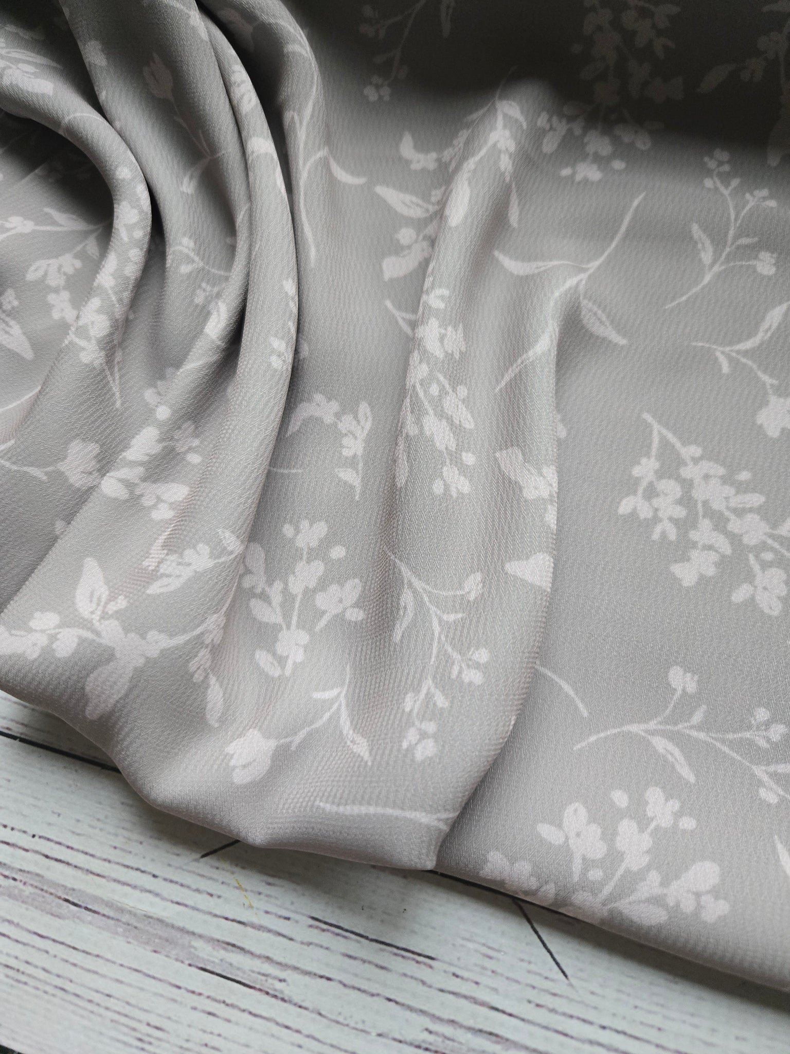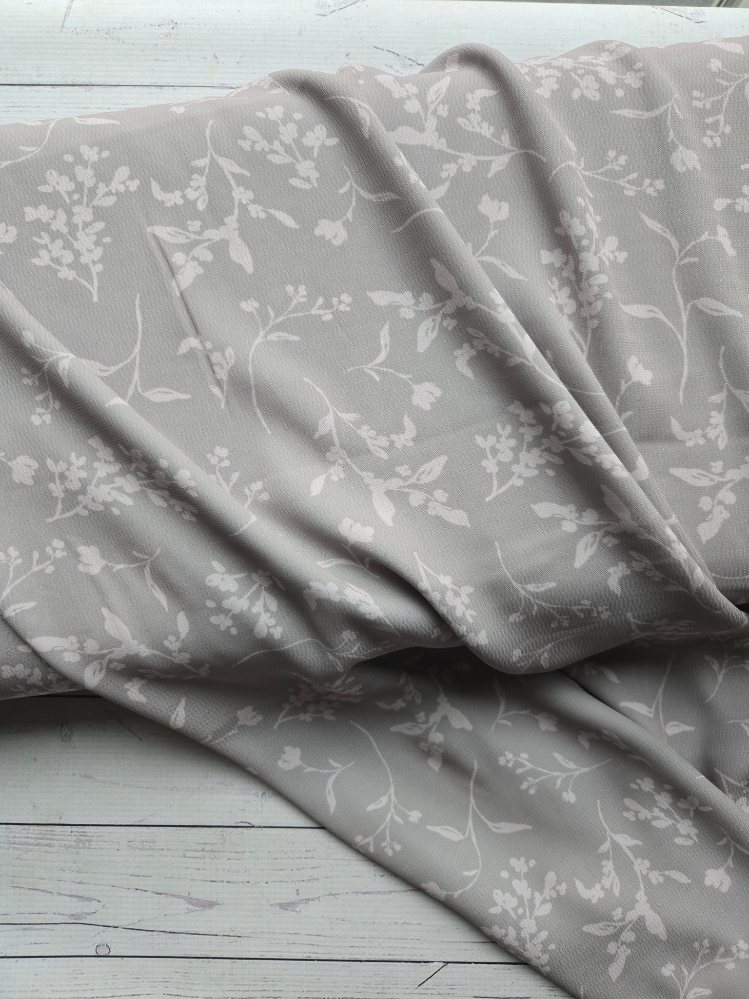 Diamond dobby poly is a 100% polyester blouse & dress weight fabric. It has fluid drape and beautiful flow. This is very similar in drape and weight to dobby georgette, but has a diamond pattern in the weave. No stretch.