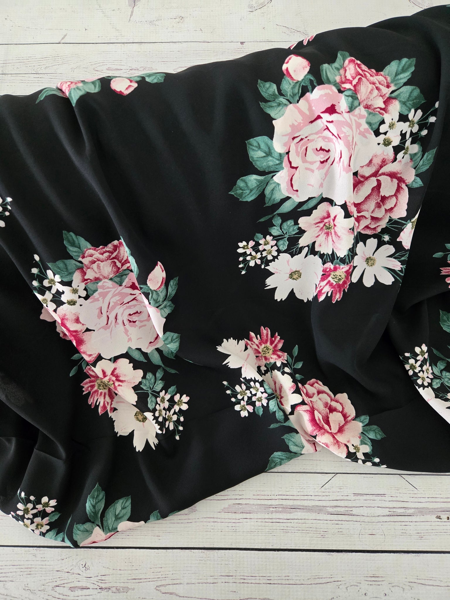Black with larger scale pink floral.