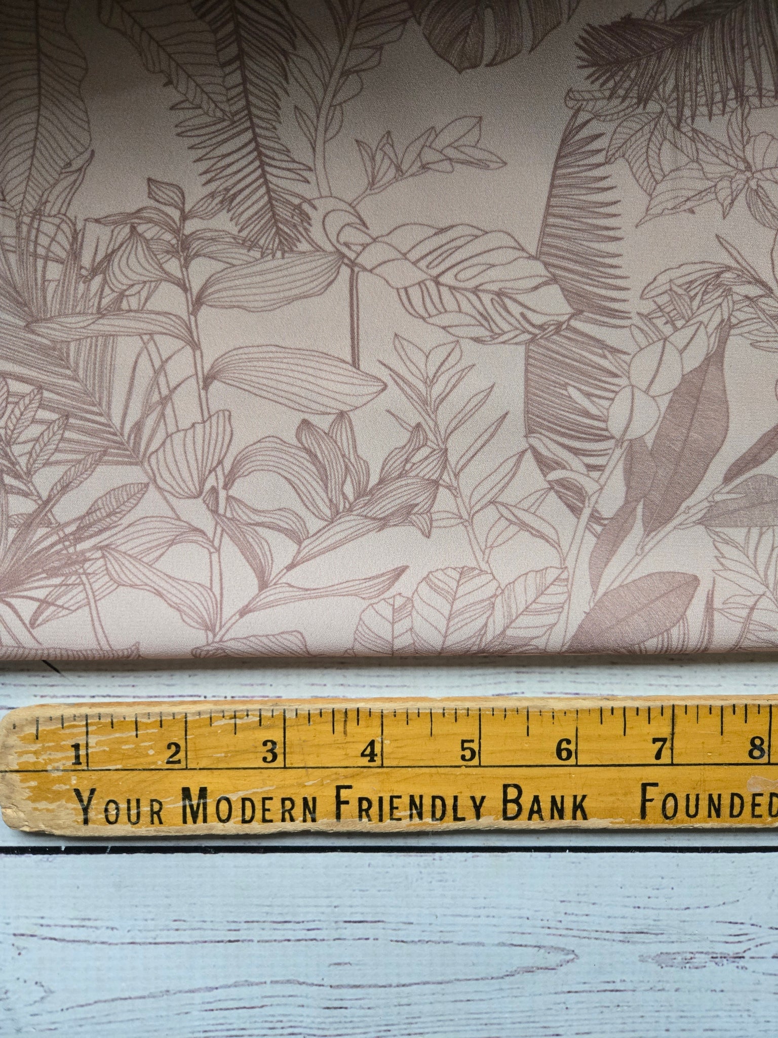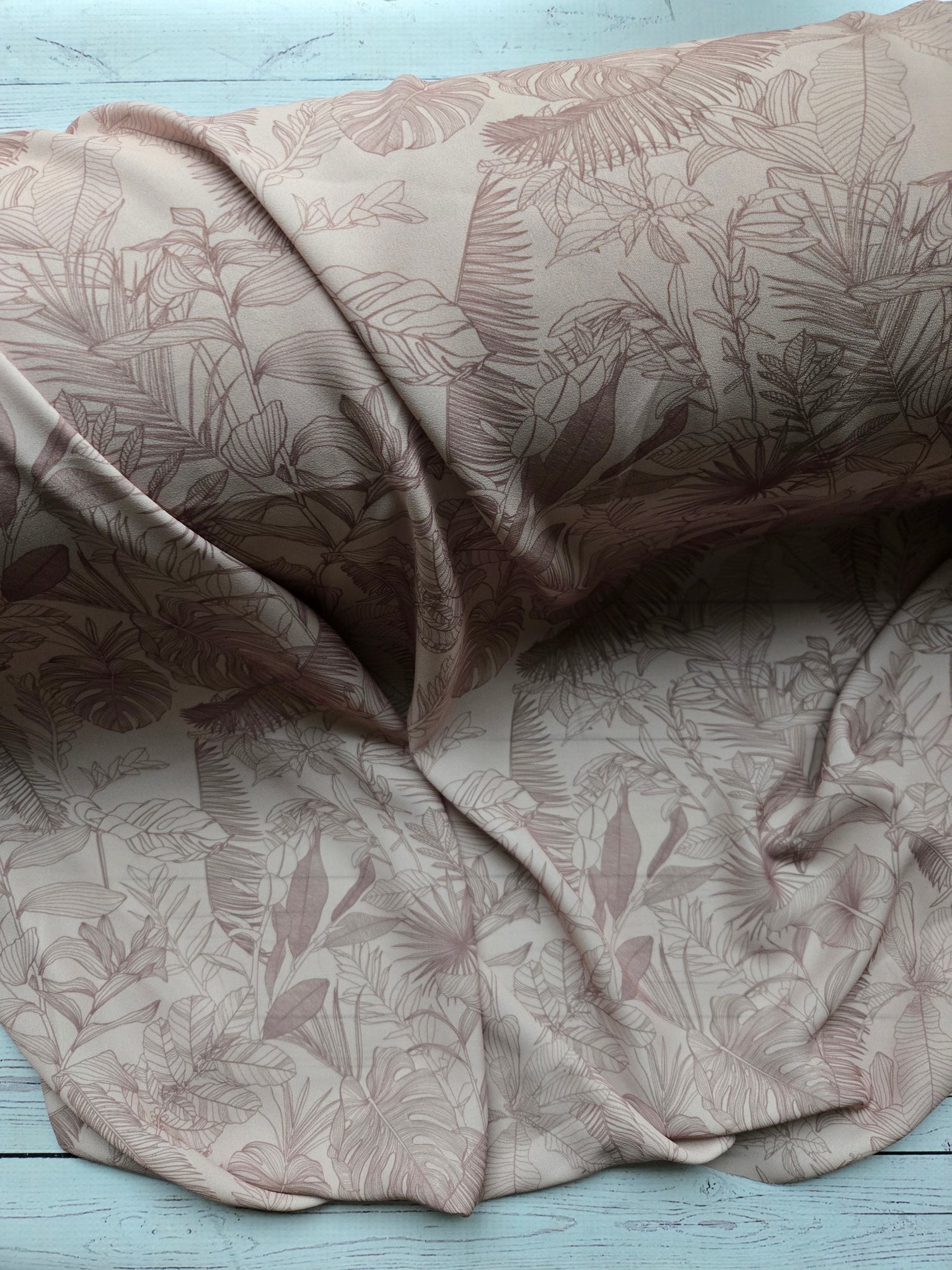 Peachy tan with brown outline tropical print.