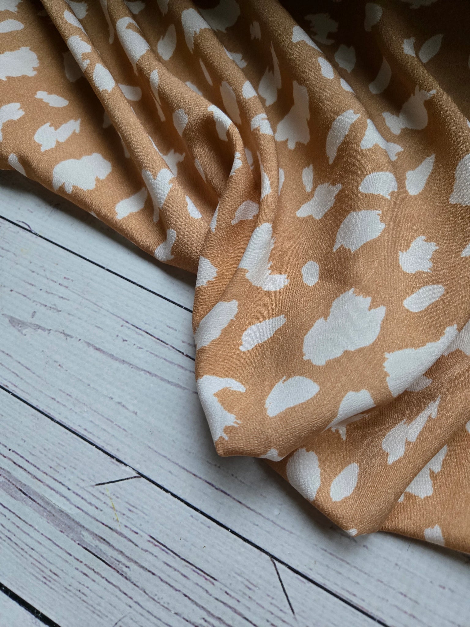 Butterscotch with random white splotches.