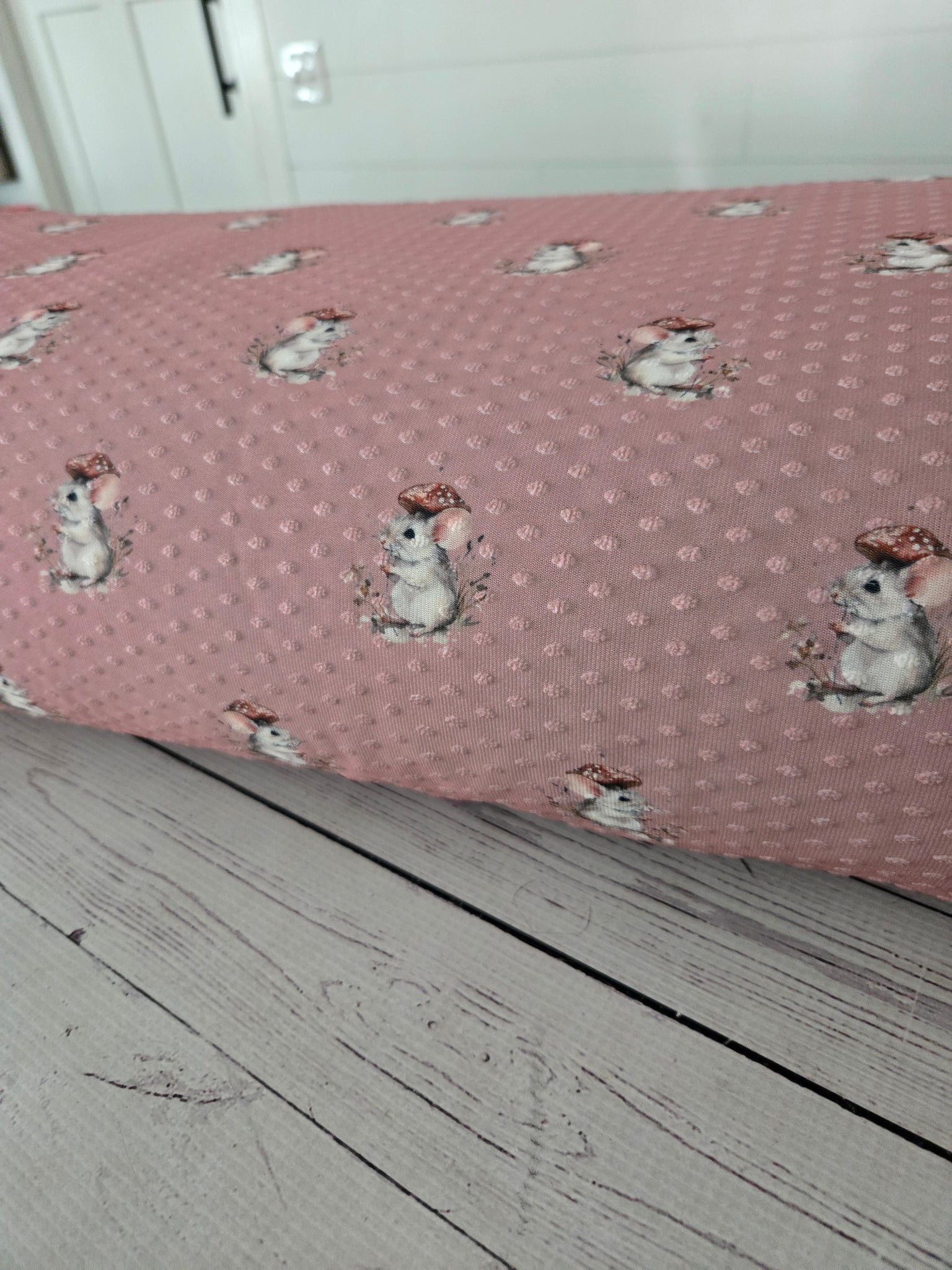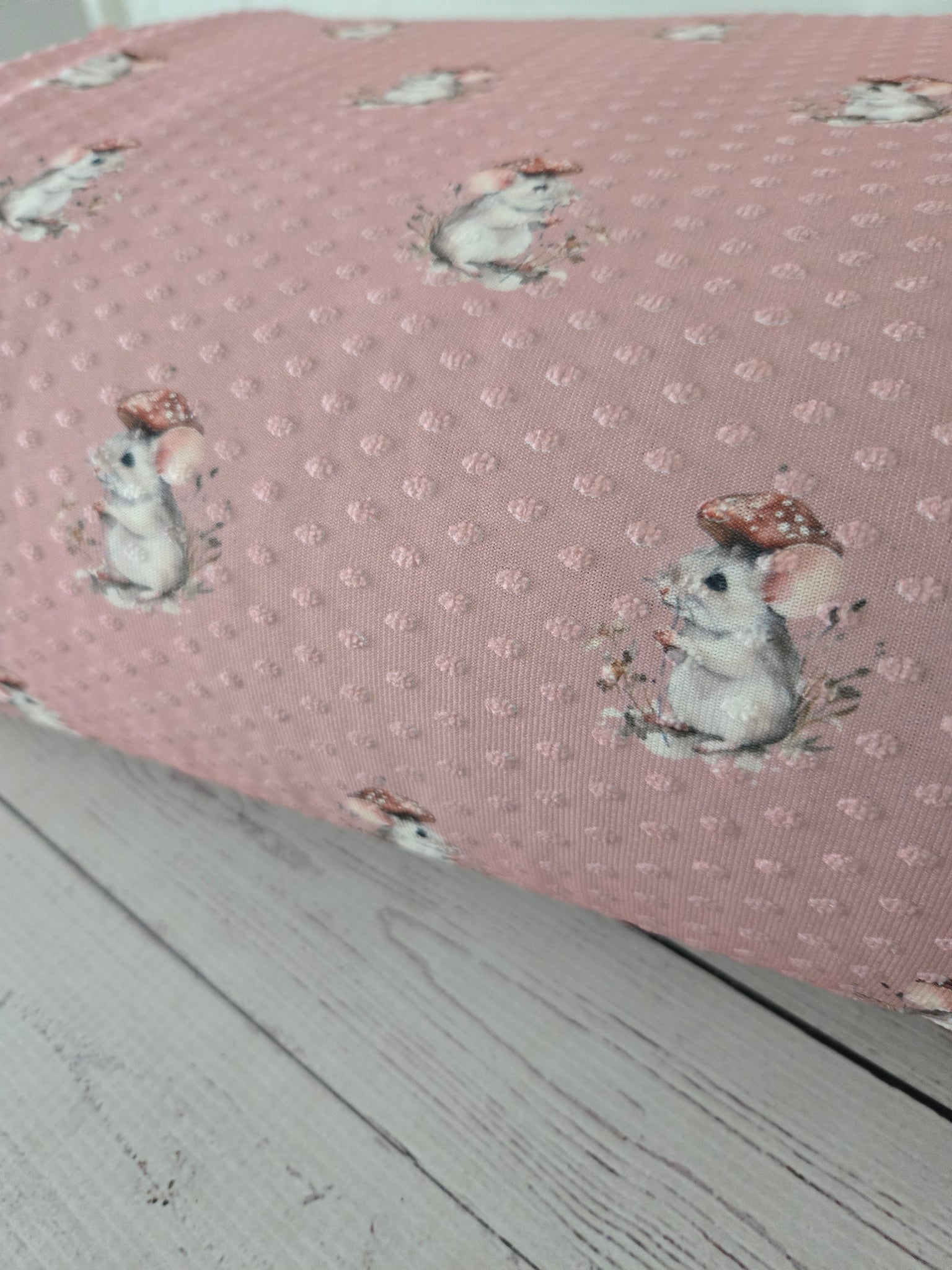 Exclusive Design- Rose Pink Mouse Print Swiss Dot Knit {by the half yard}