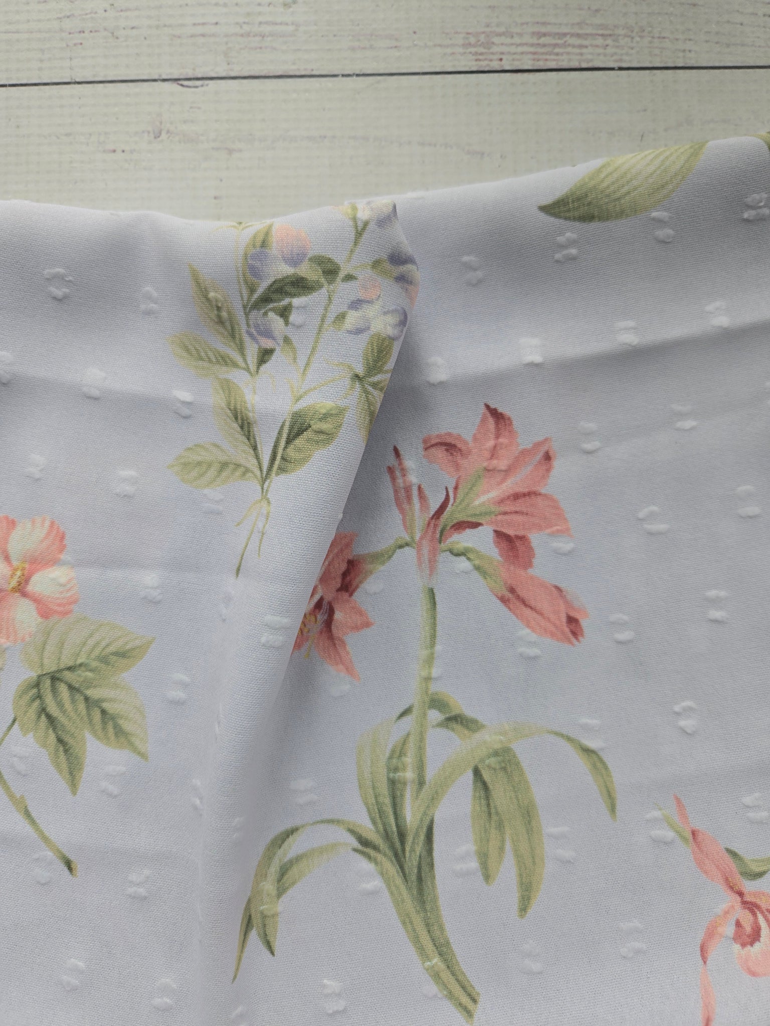 Light blue with spring floral stems.