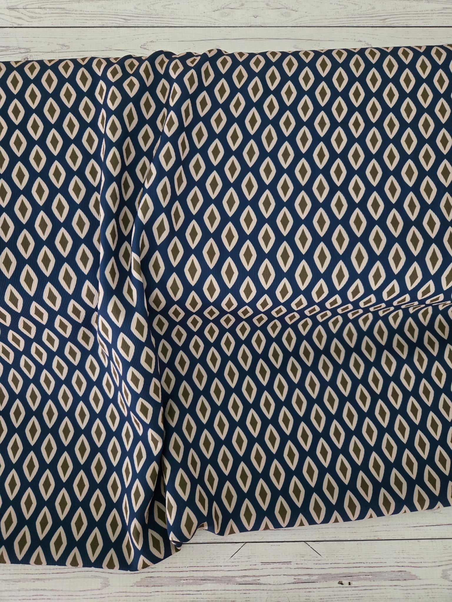 This is a 100% polyester blouse & dress weight fabric. Not a see through fabric. It has a lovely petite pinstripe texture woven into the fabric. Very flowy and dressy with a beautiful drape!