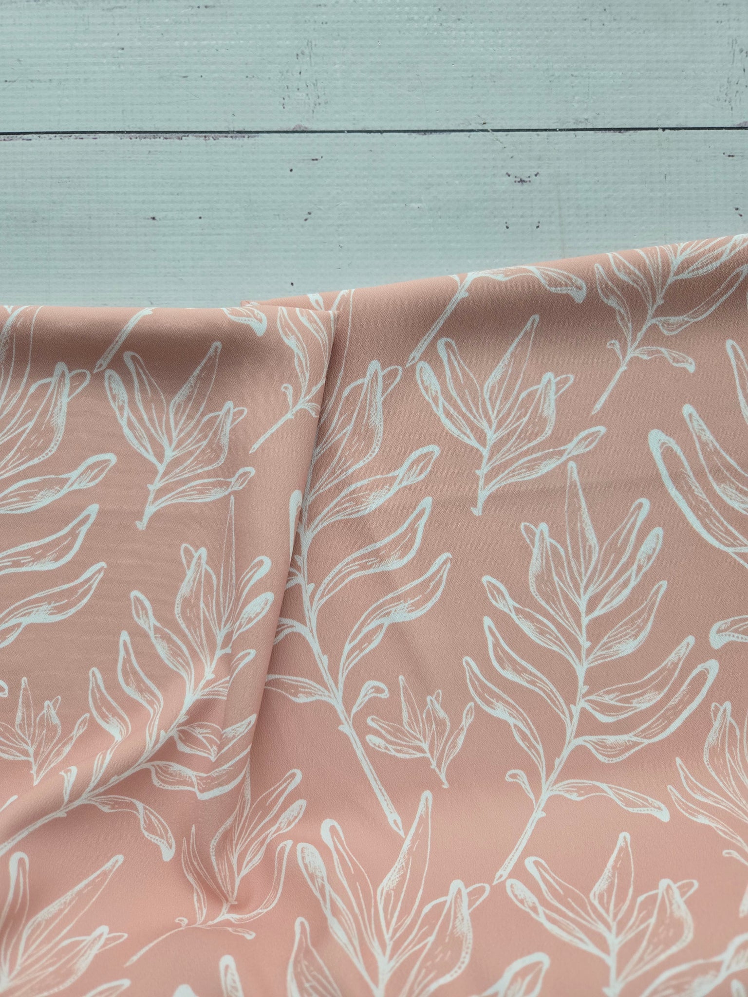 This is a 100% polyester blouse & dress weight fabric. It has a slight crepe like feel, and is very lightweight. Slightly see through but not sheer.