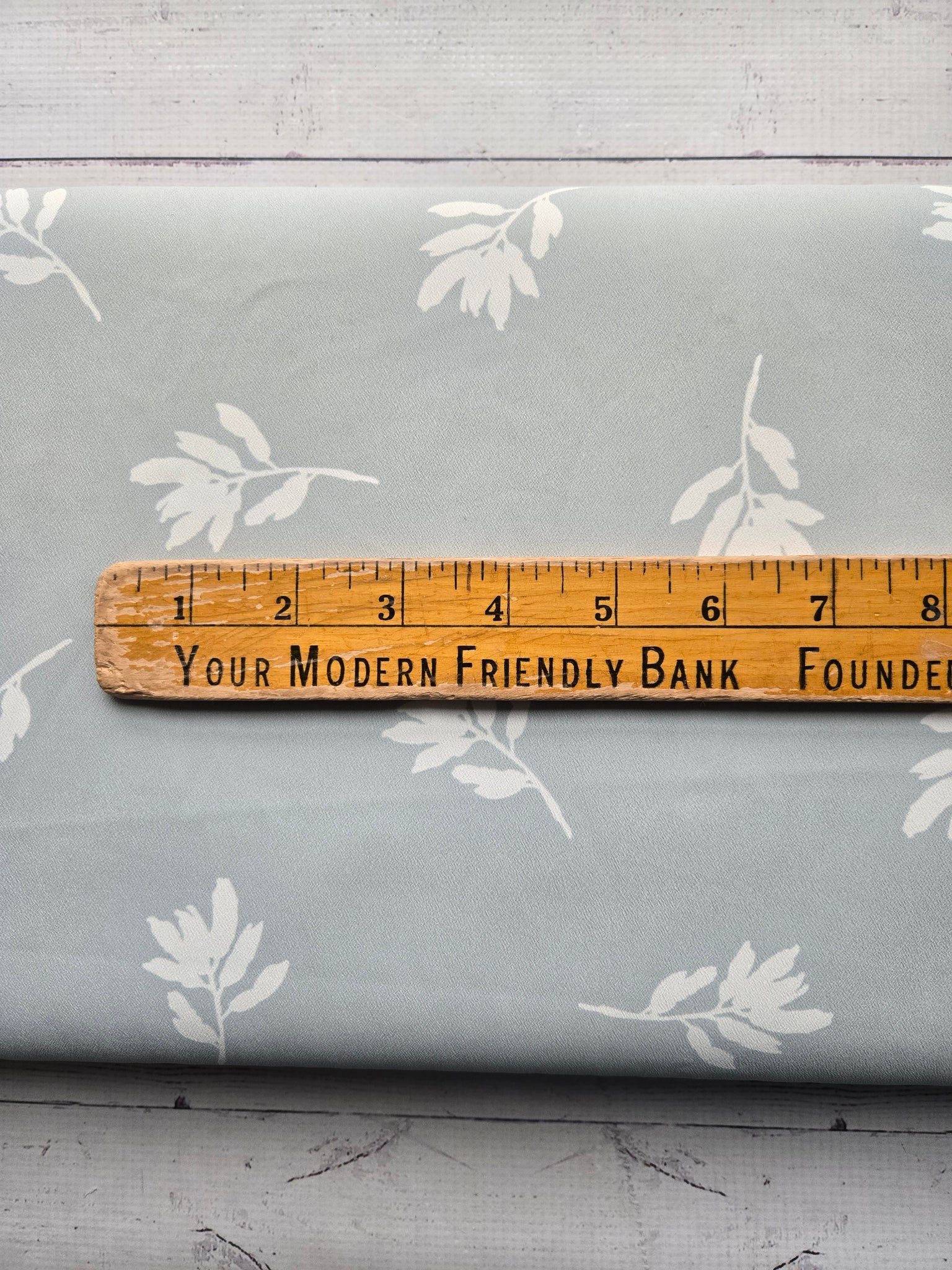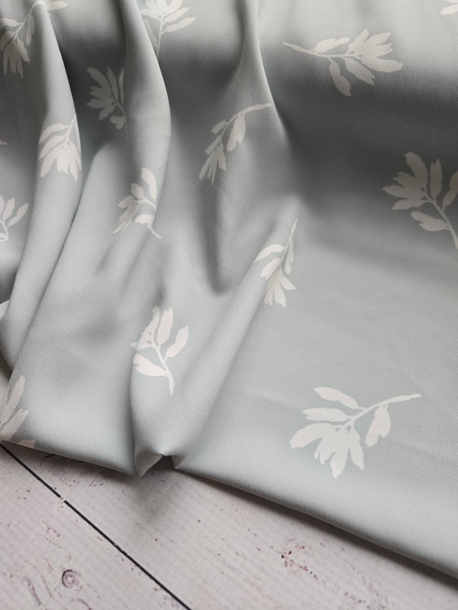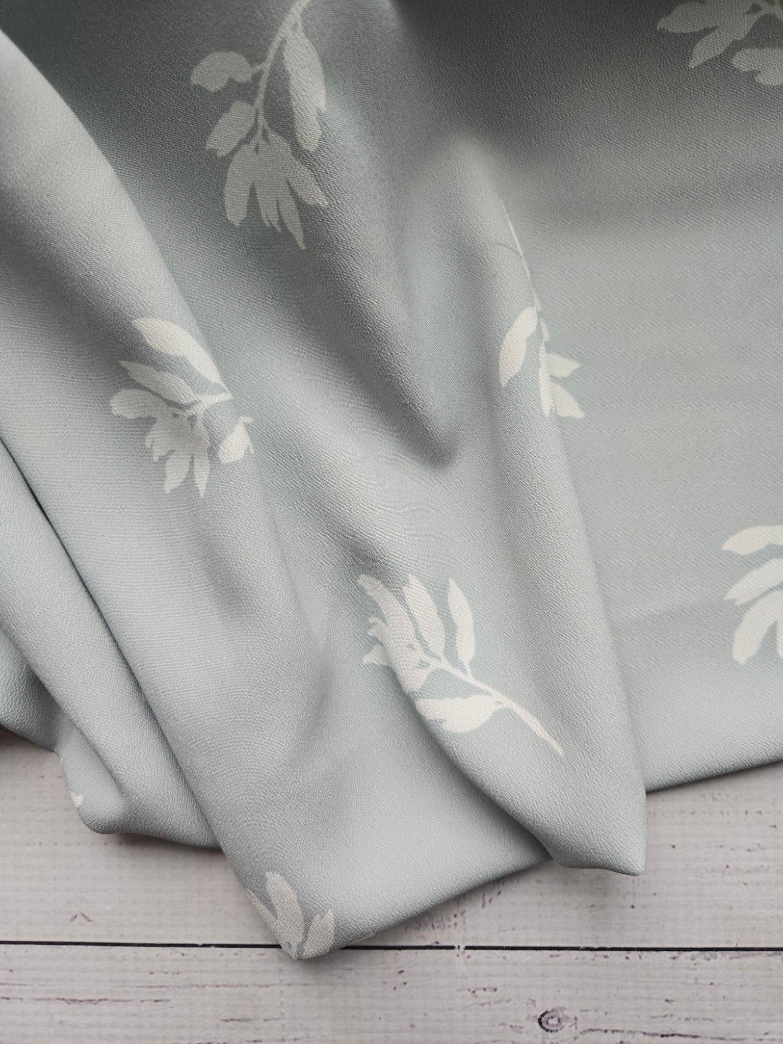 This is a 100% polyester blouse & dress weight fabric. It has a slight crepe like feel, and is very lightweight. Slightly see through but not sheer.