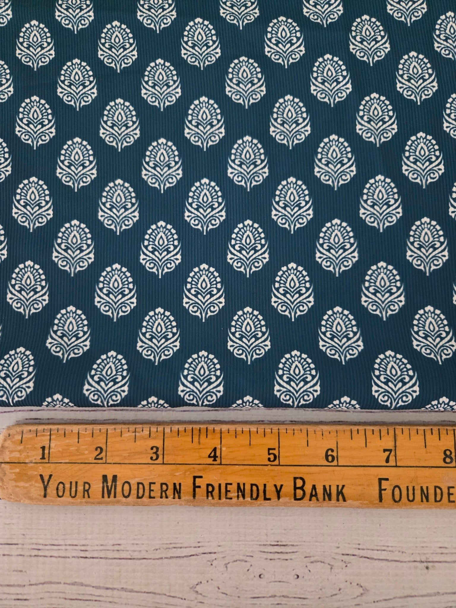 Deep teal with symmetrical block print.